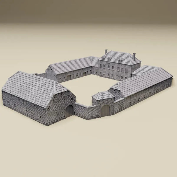 High-quality 3D printed model of Gemincourt, perfect for tabletop wargaming with small-scale historical miniatures. Inspired by the iconic buildings of the Waterloo campaign, this terrain piece also fits seamlessly into WWII and other historical settings.