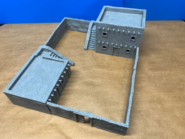 North Africa/Middle East style walled compound. Includes 2 buildings, and separate walls that can be configured in multiple ways. Fully playable interior with separate floors and removable roof. Suitable for a variety of wargaming eras.