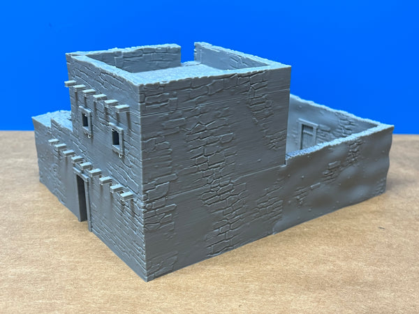 North Africa/Middle East style walled house.  Fully playable interior with separate floors and removable roof.  Suitable for a variety of wargaming eras.